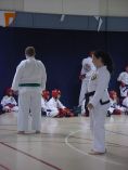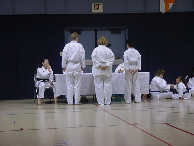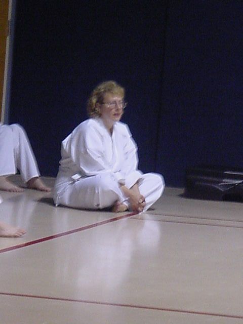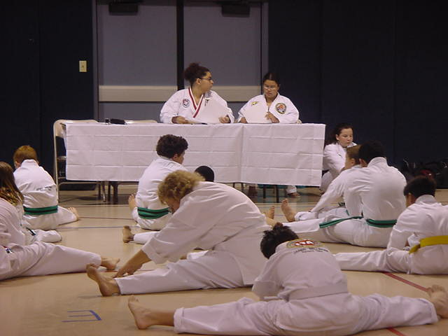 Lynn Streaching before her test |